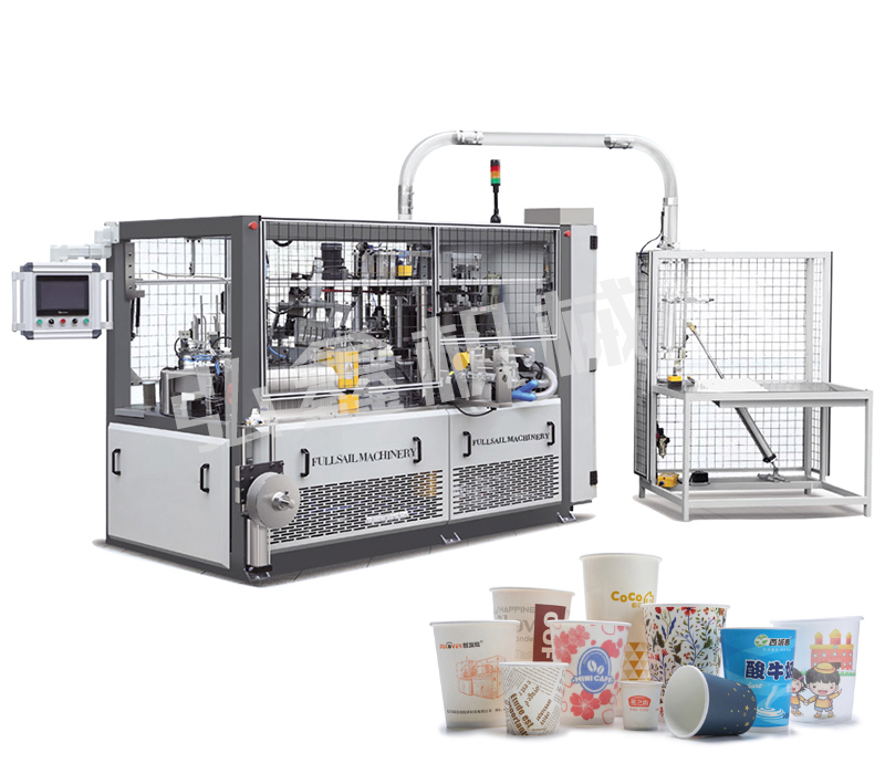 它是一種多站自動成型機械,通過自動送紙、密封(粘接杯壁)、注油、充底、加熱、滾花、卷邊等連續(xù)工藝和光電檢測、故障報警、計數(shù)等功能,是生產(chǎn)3號碗、4號碗、5號碗、康師傅碗或其他食品錐形容器的理想設(shè)備。